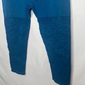 Fabletics Teal Capri Embroidered Leggings. No size tag. Measures to be a size medium. Excellent condition.