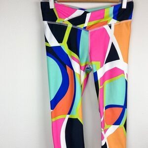 These leggings are in excellent condition. Featured with a multi-color geometric design throughout and cropped fit. No size tag - please reference measurements. Please send any offers or questions!