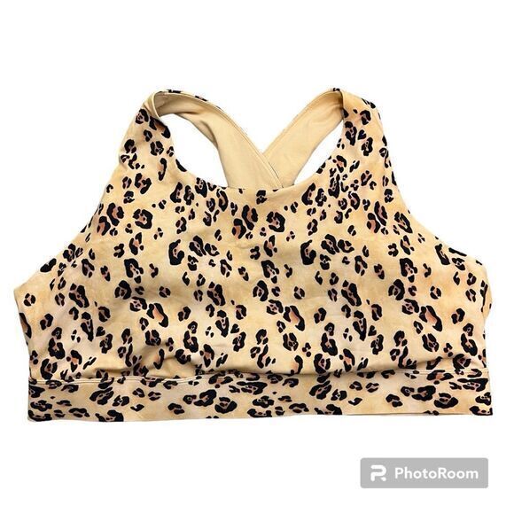 Fabletics Womens Sports Bra Cheetah Animal Print Active Criss Cross Back Beige No size tag so please check measurements for fit