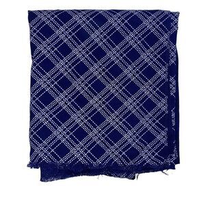 Fabric Blue With White Dashed Line Criss Cross Print Remnant 100” x 40”