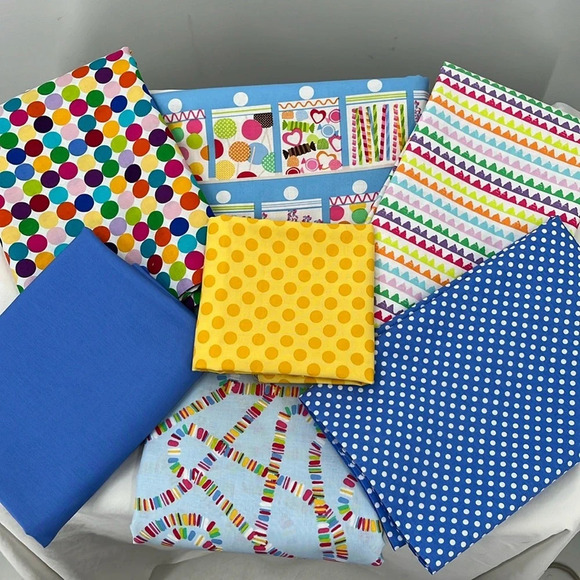 Fabric Box - Mixed Assortment- Close To 5 LBS. New without tags, cut from the bolt. This is an assortment of different cut pieces and end of bolt pieces. You get everything you see in the first picture. They are all new. I had an online fabric store and am trying to sell my remaining stock. The choices are random and cannot be switched. There may be a little bit of Hobby lobby or Joanns in the mix. No offers will be accepted. You are getting a bargain already. I don't have the time to measure any of the pieces but you are getting as close to 5 pounds of fabric without going over as I can possibly get. Great assortment for a quilter! Any question, don't hesitate to ask. You will not be able to utilize the bundle feature with these boxes. They are already at max capacity.