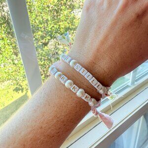 You slide the bracelet over your hand and then pull each side to tighten it. Knots can be adjusted and you can trim off the excess fabric if you would like.