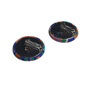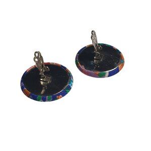 Fabric Button Clip On Earrings Colorful Floral Metal Backing Gift Grandma Core