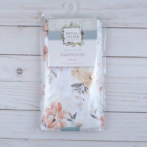 Fabric Dinner Napkins Floral Flowers Lace Edge 17x17 in Set of 4