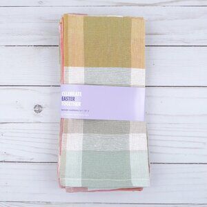 Fabric Dinner Napkins Spring Easter Plaid Cotton 19x19 Set of 4