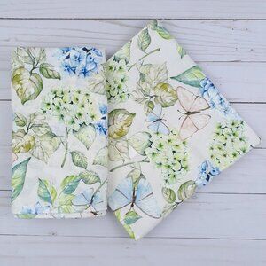 Fabric Dinner Napkins Spring Flowers Floral 17.5x17.5 Set of 4 Green Blue