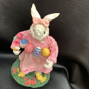 Fabric Mache Spring Bunnies Easter 11 Inches Tall Gifts Handcrafted Decoration