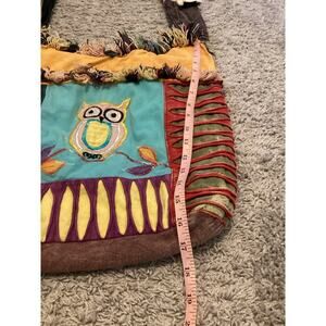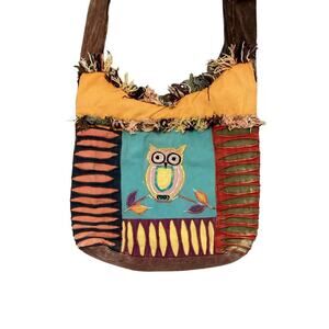 Fabric Owl Hobo Bag Cotton Blue Brown Hippie Bohemian Indie Emo Crow Patchwork