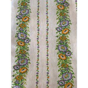 Fabric Purple Orange Floral Stripes White Ivory Quilting Sewing Remnants Art VTG