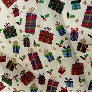 Photo 2,3,4 - Stripped scarf 11" x 60" ( no flaws),Quilted 3 pc - 9" x 13 (new), Christmas fabric 13.5" x 28"