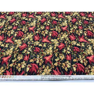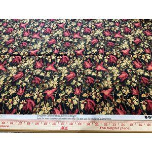 Fabric - Susan Winget "CARDINAL HOLLY" Birds, 100% Cotton - 1.50 Yards - NEW