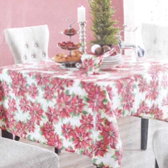 Fabric Tablecloth Christmas Poinsettia Flowers 52x70 Holiday S1