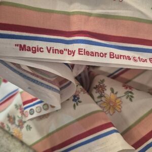 Fabric, White/Red/Pink Striped Floral Cotton Benartex Magic Vine by Eleanor Burns 45" wide x 1 yd