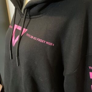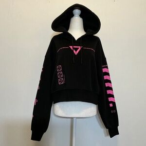 Fabric of the Universe Cybertech Black Pink Graphic Unisex Hoodie Sz Large