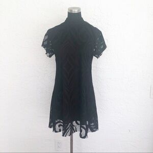 Fabrik Black High Neck Retro Mini Cocktail Dress