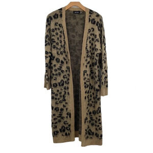 Fab'rik Duster Cardigan Womens Small Tan Black Animal Print Leopard Oversized