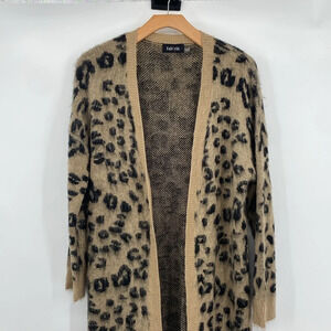 Fab'rik Duster Cardigan Womens Small Tan Black Animal Print Knit. 100% Acrylic. Oversized. Size small can fit up to large. Super soft! Pre-owned Condition- no flaws, no rips, stains, or holes.