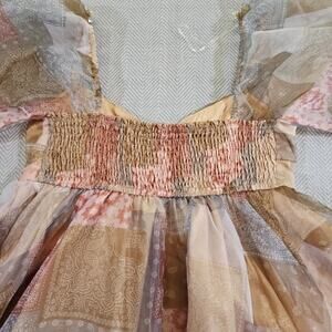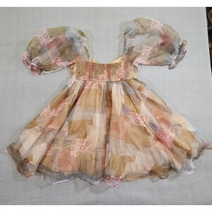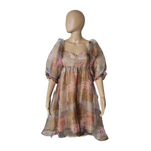 Fab'rik Fiarycore Empire Waist Dress Size Large Fall Colors Bubble Sleeves Y2K
