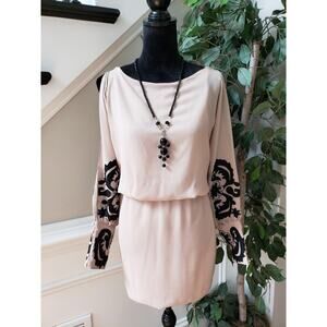 Fab’rik Sheath Dress Women Small Pink Polyester Cinch Waist Cold Shoulder Sleeve