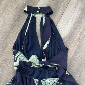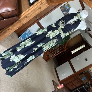 Fab’rik Size Small Palm Maxi with Faux Attached Wrap and open Sexy Back Tie. Navy and Green