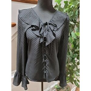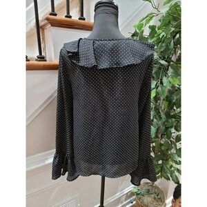 Fab'rik Women's Black 100% Polyester Long Sleeve V-Neck Blouse Size Large