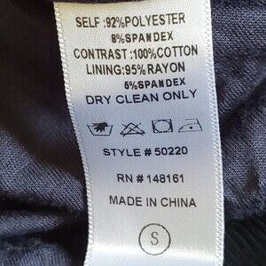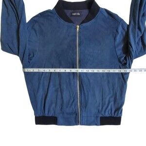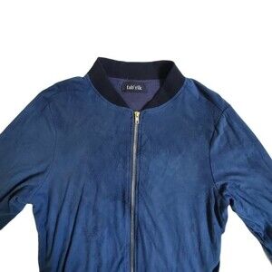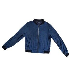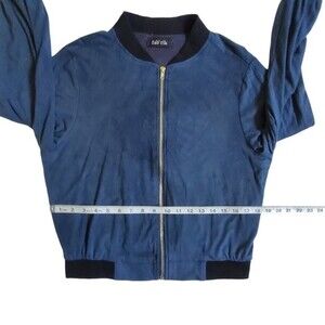 Brand: Fab'rik. Occasion: Casual. Size Type: Regular. Size (Women's): S. Material: SELF: 92% polyester 8% spandex. CONTRAST: 100% cotton. LINING: 95% Rayon 6% spandex. Style: Zip-up jacket. Style # 50220. Sleeve Length: Long. Color: Blue black.