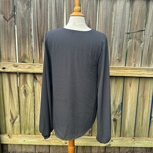 V-neck Balloon sleeves with elastic at wrists Fully lined 100% polyester Chest: 19.5” Sleeve:24” Length: 23”-29”
