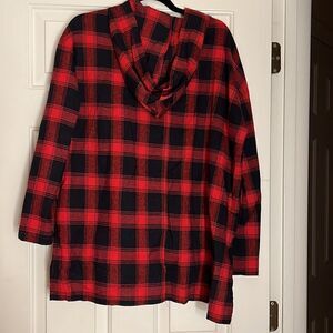 Fab’rik Flannel Hooded Long Sleeve Tunic Top L. Worn once. Sleeve roll and have a button to keep rolled.