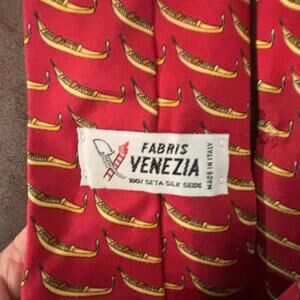 Fabris Venezia 100% Silk Tie Made in Italy Red Venetian Gondola Novelty Necktie