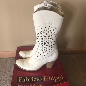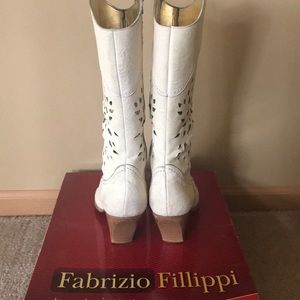 Very unique leather Boots Europe size 40 I believe American size 10. Wearing this boots I got million of compliments everyday 😘🌺🎁comes with orig. box😉condition as seen perfect 👌