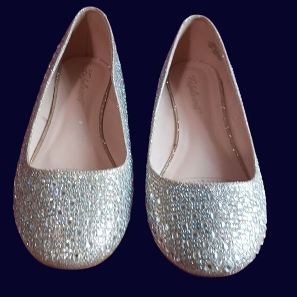 Fabulicious Rhinestone-Embellished Ballet Flats Color Nude Glitter Mesh Size 10