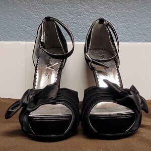 Fabulicious brand heels, black satiny with bow off to the side, size 6, in great condition