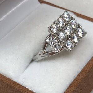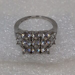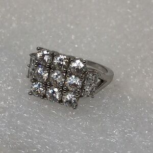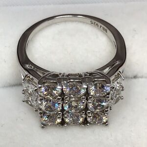 Fabulite Strontium Titanate Ring Square 9 Stone Round Sterling Silver Size 7