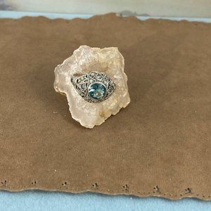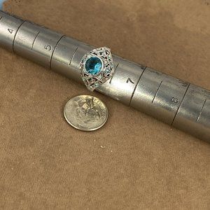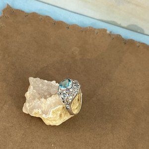 Fabulous 1CT Aquamarine & Fire Opal Size 6 Ring