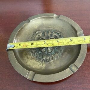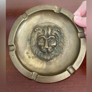 Fabulous Antique Brass Lion Face Ashtray Heavy Detailed Trinket Dish