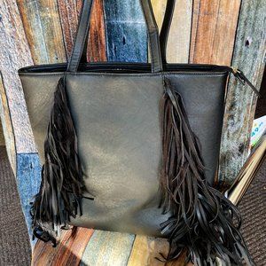 Fringy Black Large Bag / Purse. Has an outer zipper compartment on back, looks brand new. The inside has a slight bit of wear but not bad at all. Excellent Condition. Maybe used 2 times.