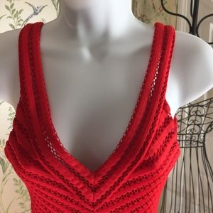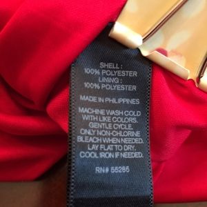 Fabulous Express Red Mini Dress, Size 4, fully lined, sleeveless, V-style neck line (back and front), side zipper with hook & eye clasp, in "gently used" condition; Length from top of shoulder to hem 34", pit to pit 14.5"; Shell 100% polyester, lining 100% polyester, machine wash.