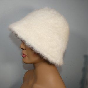 Fabulous! Fun Stylish Fashionable Faux Fur Bucket Hat Ivory