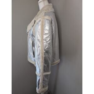 Fabulous Furs silver metallic futuristic Y2K coat by Donna Salyers lg