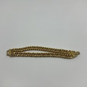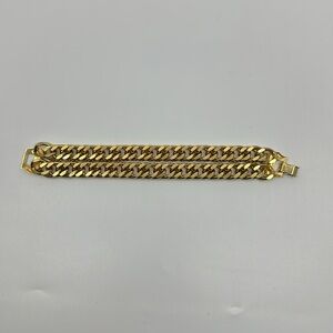 Fabulous goldtone link double chain bracelet, Not labeled but great pieces to have, spice up and outfit, wear alone or stack! Measures about 7 1/2” L X 1” W. OFFERS ARE WELCOME!