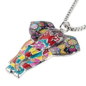 ADORABLE ENAMEL ELEPHANT NECKLACE IN SILVER TONE! BRAND NEW!