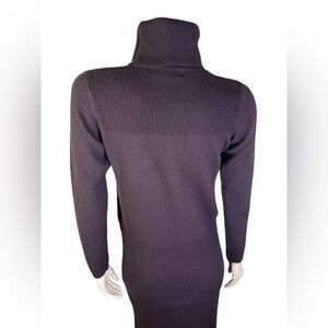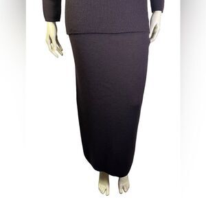 This awesome 2 piece look is so easy to wear, looks stunning on everyone! Andrea Jovine created this sweater/skirt set in 100% dark brown wool. The petite top is a turtleneck, and features 2 small decorative pockets at the hip. The medium A-line skirt is a pull-on, with plenty of stretch. Measurements are as follows: