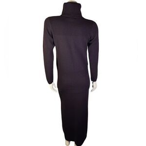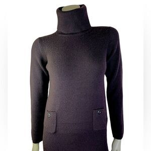 This awesome 2 piece look is so easy to wear, looks stunning on everyone! Andrea Jovine created this sweater/skirt set in 100% dark brown wool. The petite top is a turtleneck, and features 2 small decorative pockets at the hip. The medium A-line skirt is a pull-on, with plenty of stretch. Measurements are as follows: