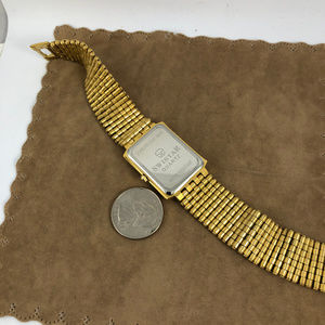 Fabulous Swistar Gold Tone Metal Link Tank Watch Stainless Steel Back Heavy 18 Karat Gold Plating Store Demo New battery Serviced 8.5 inch inn length 1x1.5 inch case