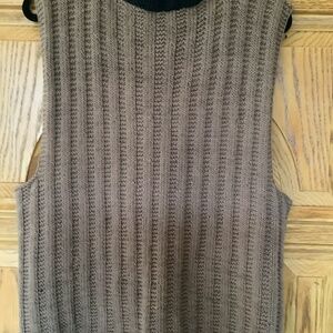 This HandKnit fabulous vest is knit with three gorgeous colors….side seams are open and have the most yummy black buttons…..the pin closure is a sweet way to hold together but can be worn without the pin … what a unique knit piece….perfect to wear all year round!