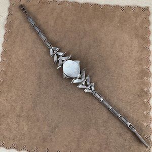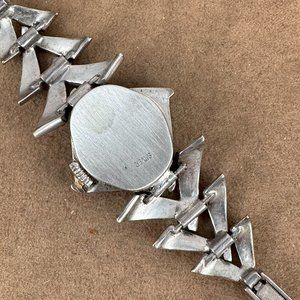 Fabulous Vintage 1920-1930's Ladies Wrist Watch Bracelet with Marcasite Settings with 7 inch link Sterling Silver Bracelet. The Diamond Shaped Case Measures 7/8 inch with lugs by 7/8 inch wide Silver Face with Gold Hands and Raised markers 17 jewels Movement. This beautiful ladies wristwatch is in Excellent vintage condition. All the stones are intact, it winds and runs, and in excellent vintage condition.