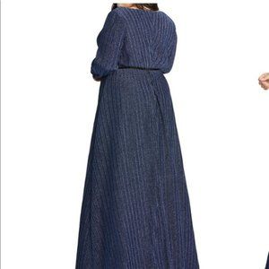 Details: Long sleeves, Small pleats, Glittered, Thin band, Long A-line dress, Back zipper, Sweep train