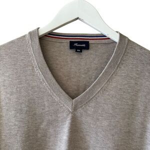 Facconable Tan Beige V-Neck Jumper Soft Minimalist Office Silk Blend Men’s Lightweight Sweater SZ XXL #2385