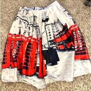Face & Face Women Nostalgic Y2K NY Travel Telephone Booths Silky Pleaded Skirt L