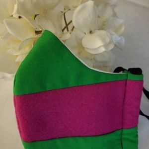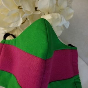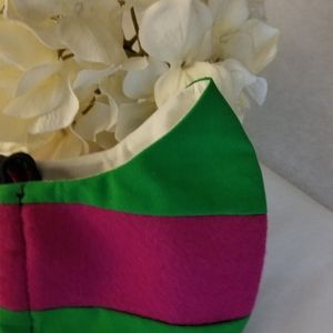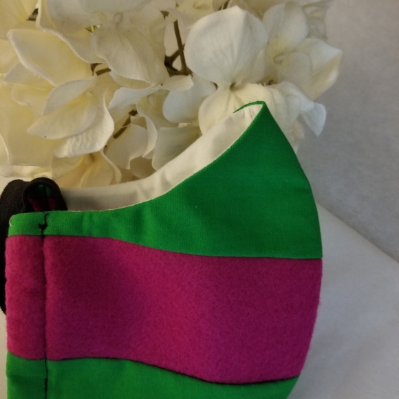 Fushia felt pink and grass green canvas fabric.. non washable. Custom made